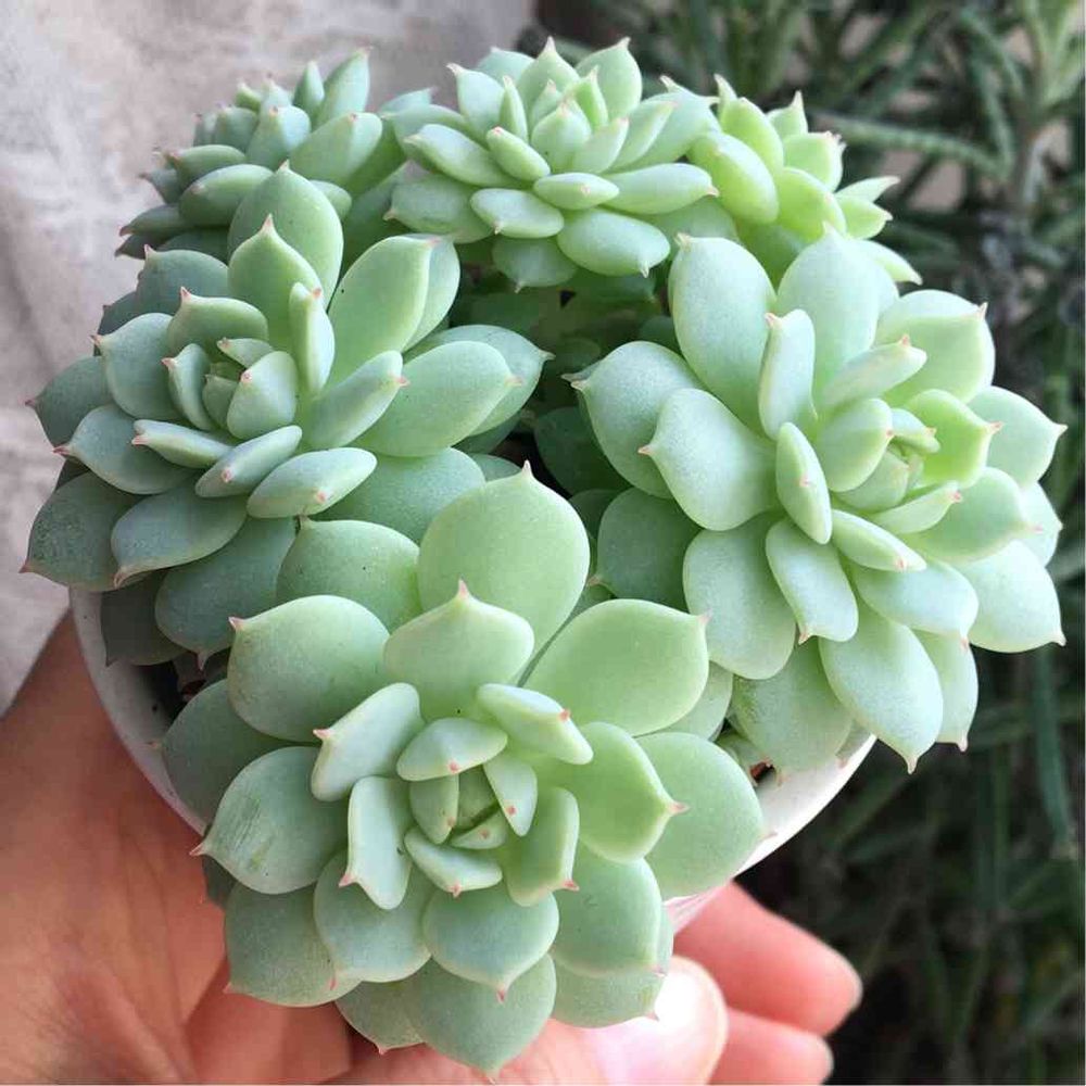 うちの静夜ちゃんです。妹から葉を分けて貰って、約1年。立派に育っています🌟 葉先がピンクに尖ってかわいいし、青みのある薄い黄緑がお気に入りです😍