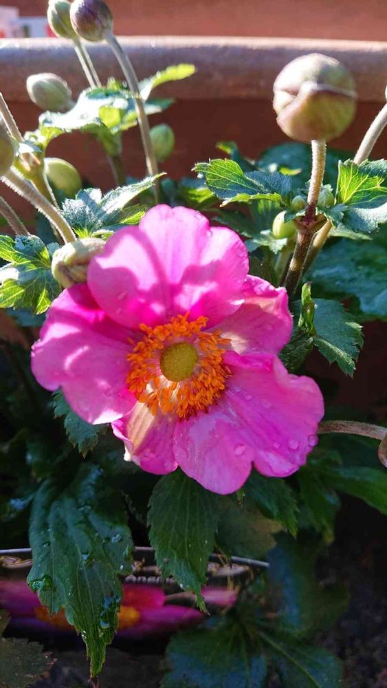 やっと、ピンクのシュウメイギク、一輪、咲きました🎵