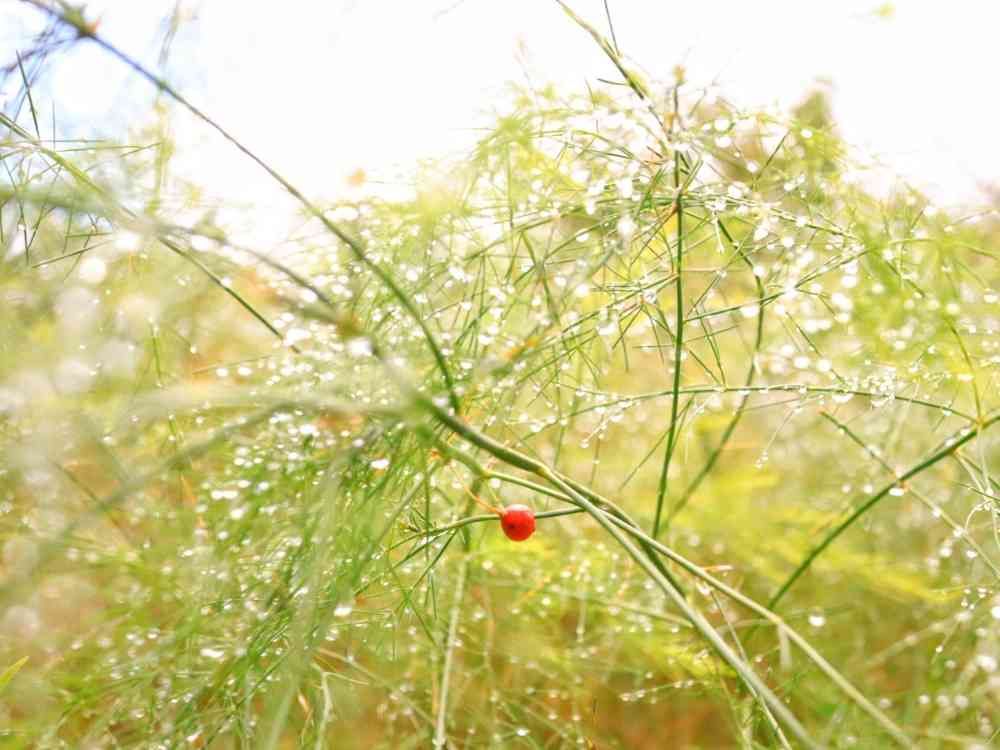 アスパラガスの実って、こんなにちっちゃくて赤い🔴のですネ👆( Ꙭ)