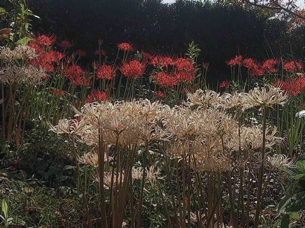 曼珠沙華の白と赤が咲いていました