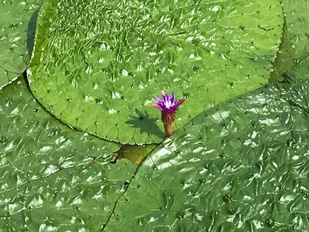 あ、これはオオオニバスより小さいオニバスの方です。オオオニバスはツルツル綺麗な葉っぱな気がします。