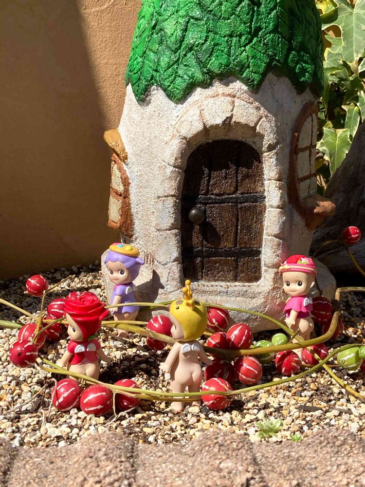 キューピーさん可愛いし琉球スズメウリの赤い粒の色が素敵だね💖