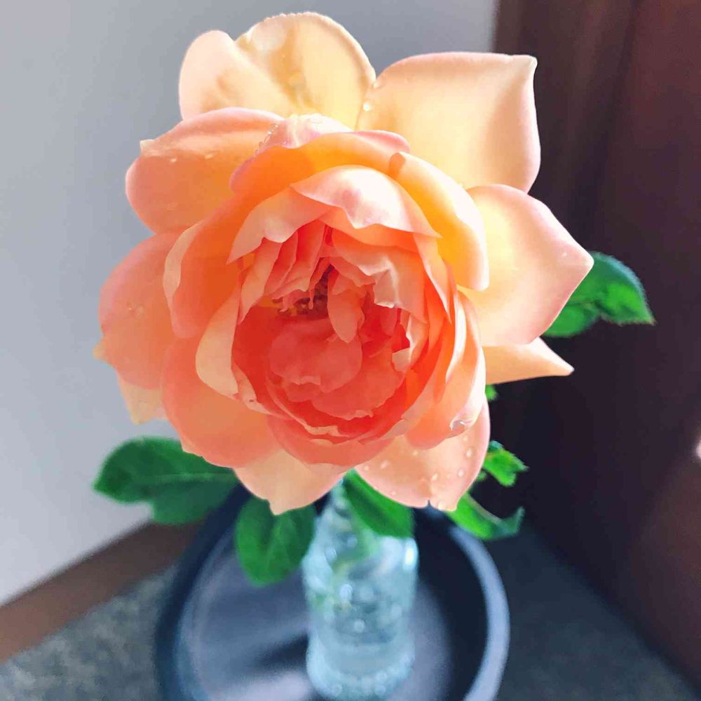 もっと濃いアプリコット色のバラなのですが我が家の子は薄めです( ᷇ᵕ ᷆ )