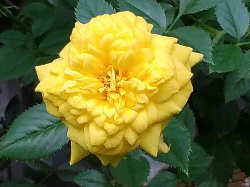 真ん丸に咲いてた黄色のミニ薔薇🌹
