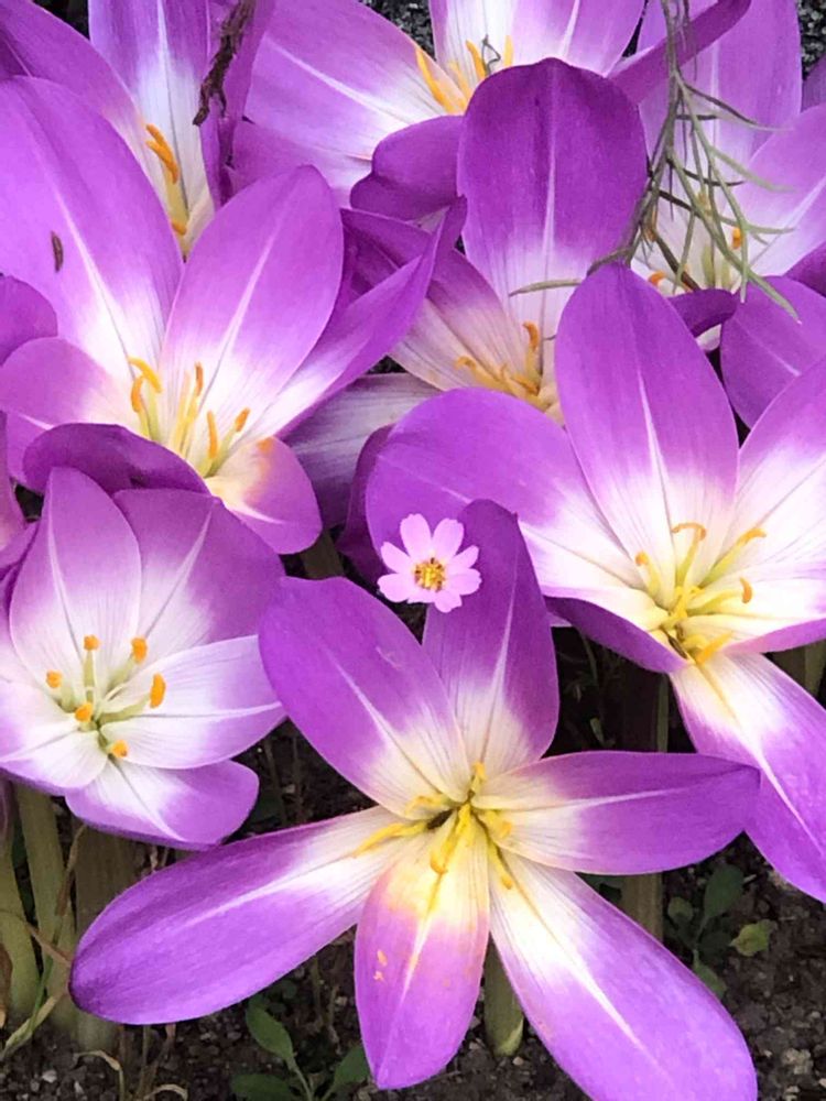 こんなに開いているコルチカムもあまり見かけないし、小さなコスモスが紛れていて‥😊