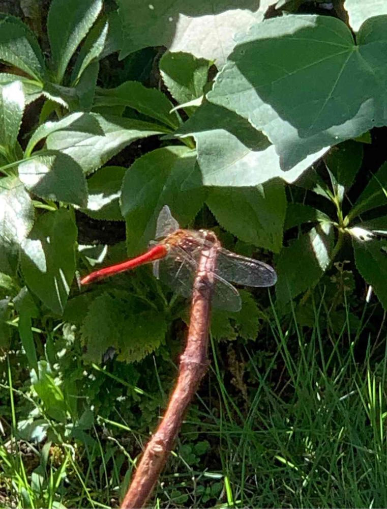 爽やかな風🍃に乗って大空を舞い、枝に止まって一休みをする赤トンボに癒やされるひとときを感じます☺🎵