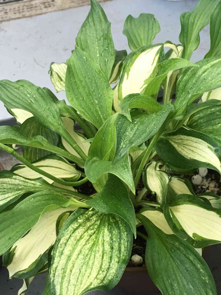ギボウシの班入りの葉 涼しげな感じですね〜✨🤗 お花のほうは今年咲きそうですかね⁉️