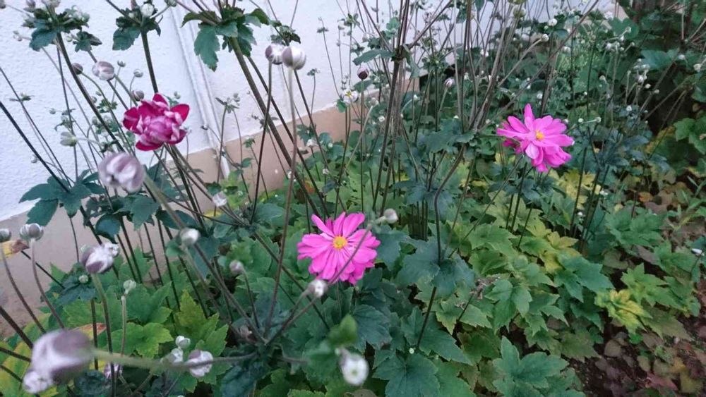 【20200929】朝晩の気温が急に下がりましたね😱外のアガベ達いつ頃避難させましょうかね🍀写真はシュウメイギク☆この色もかわいい❗