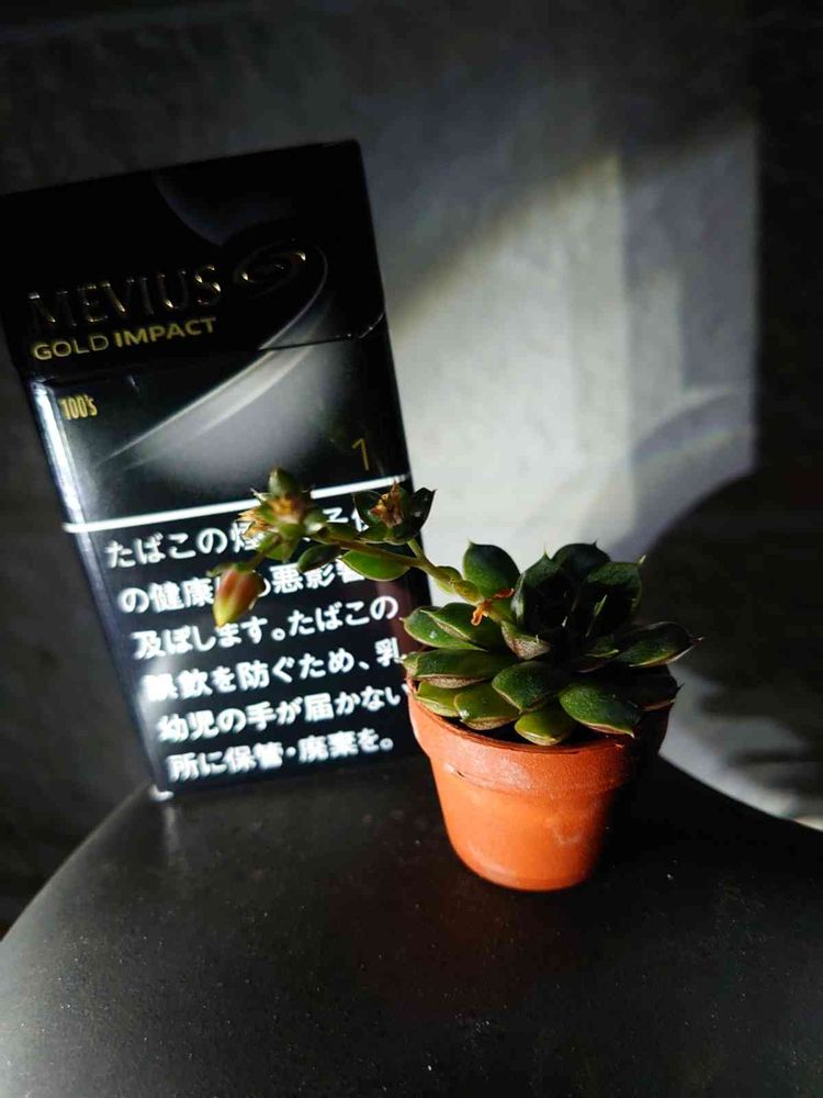 こんばんは〜😀後ろの本?がめっちゃきになります!多肉おチビちゃんと禁煙啓発のコラボですね🚭