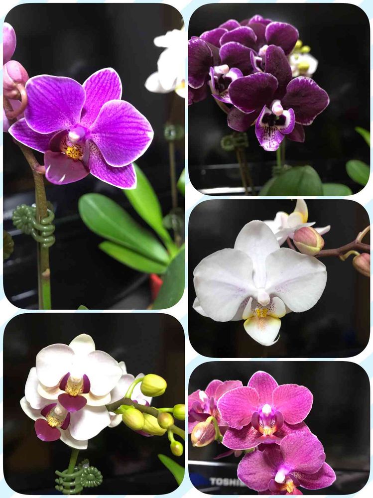 春になったら、いろんな胡蝶蘭で窓辺は色とりどり。