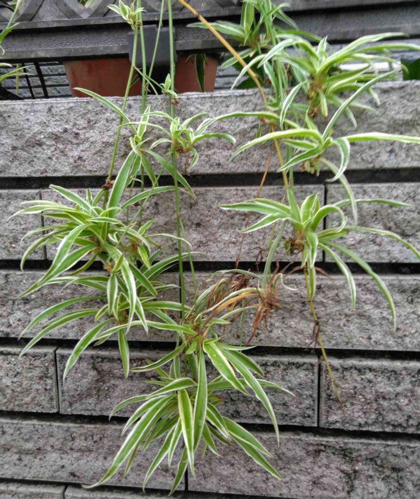 帰り道に、ご近所の塀から、下がっている、オリヅルランを、見つけました。