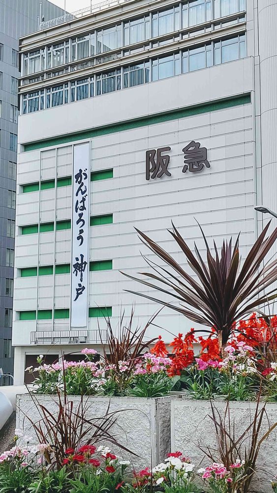 神戸阪急に「かんばろう神戸」メッセージ懸垂幕掲出♥