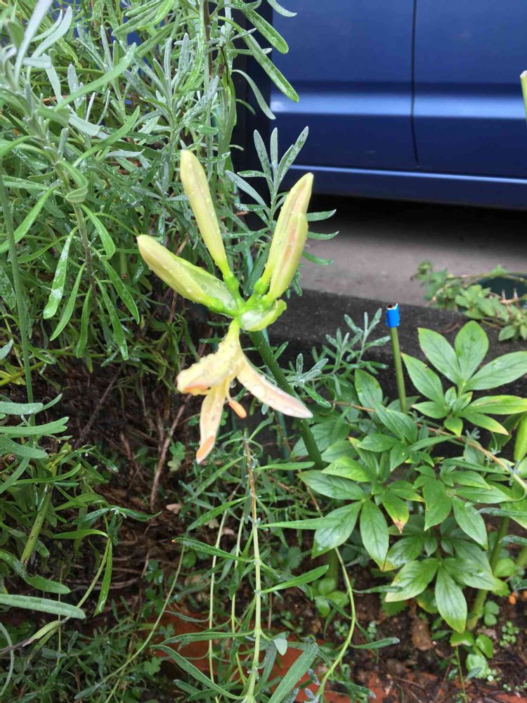 黄色いリコリスが枯れた隣からまた3本ほど出てきた。多分リコリスアルビフローラかと。リコリスのホワイトのはず
