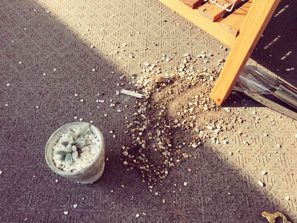 棚を動かしたんですが、鉢が端の方に寄っていたことに気づかず落としてしまいました(´;ω;`)