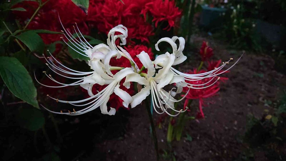 後拝の紅いお花は曼珠沙華八重咲きです。良い色だな🎵❣️。