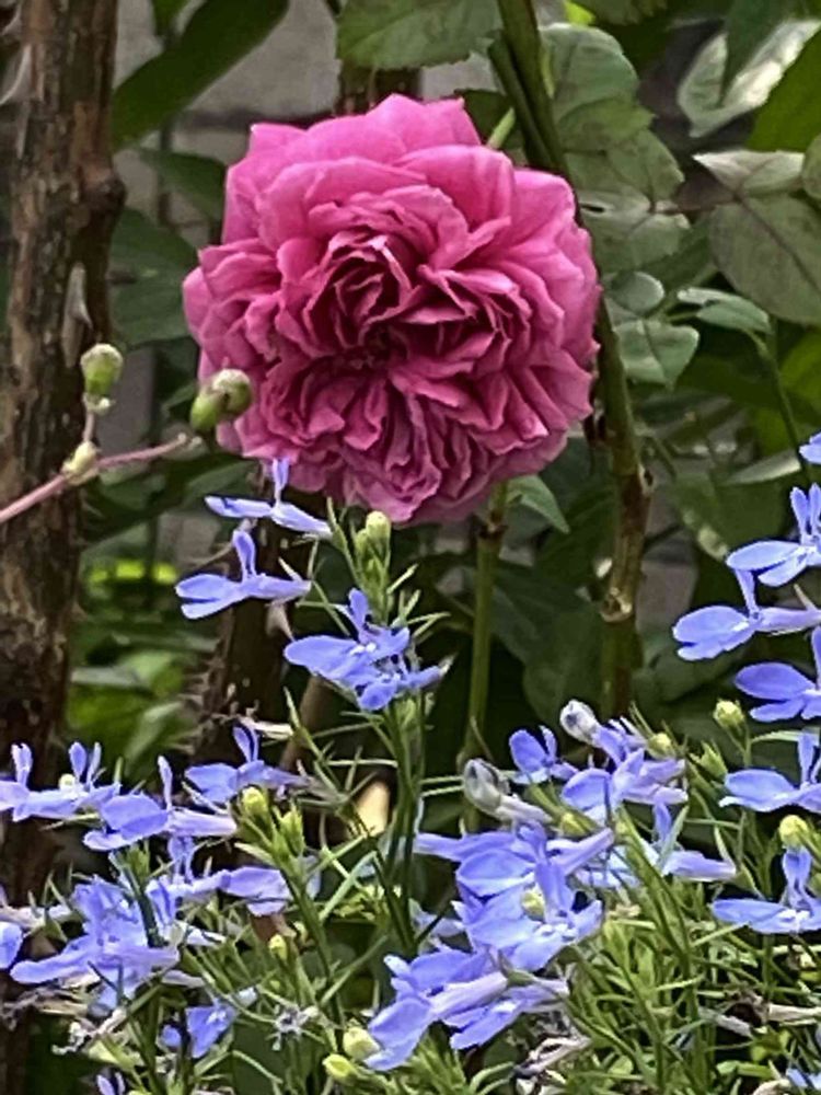 アズーロの後ろでタイミング良く咲いてくれました〜🌹💕