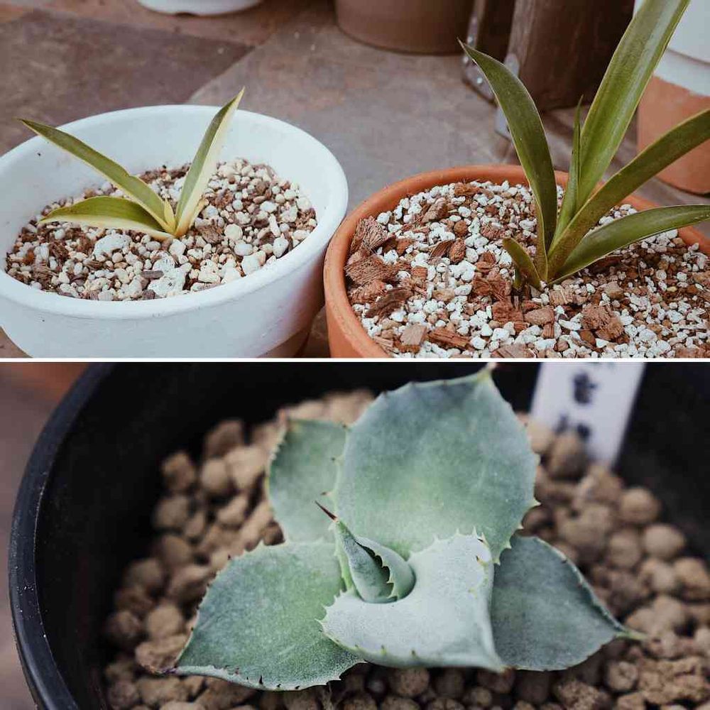去年末にチビ株を育て始めちゃったアガベ ベネズエラ。半年後、まだこんな感じにしか育ってない😖が上の写真🤳