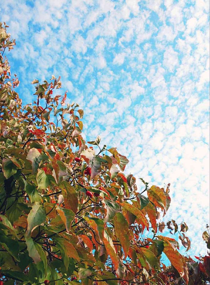 最近こちらは昼夜の寒暖差が大きいので葉っぱがチラホラ色づいてきました🍁
