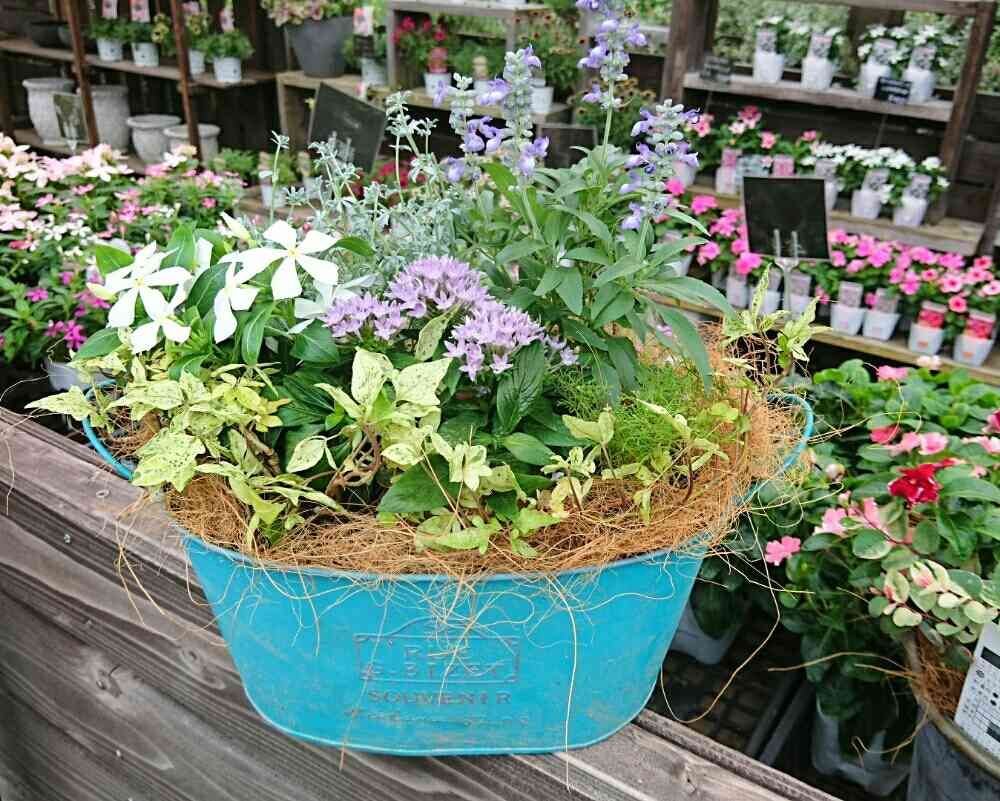 #夢と緑を運ぶ店ホピー#有限会社鈴蘭園#神戸市北区園芸店#花屋#ガーデニング#寄せ植え#夏色#ブルー&ホワイト