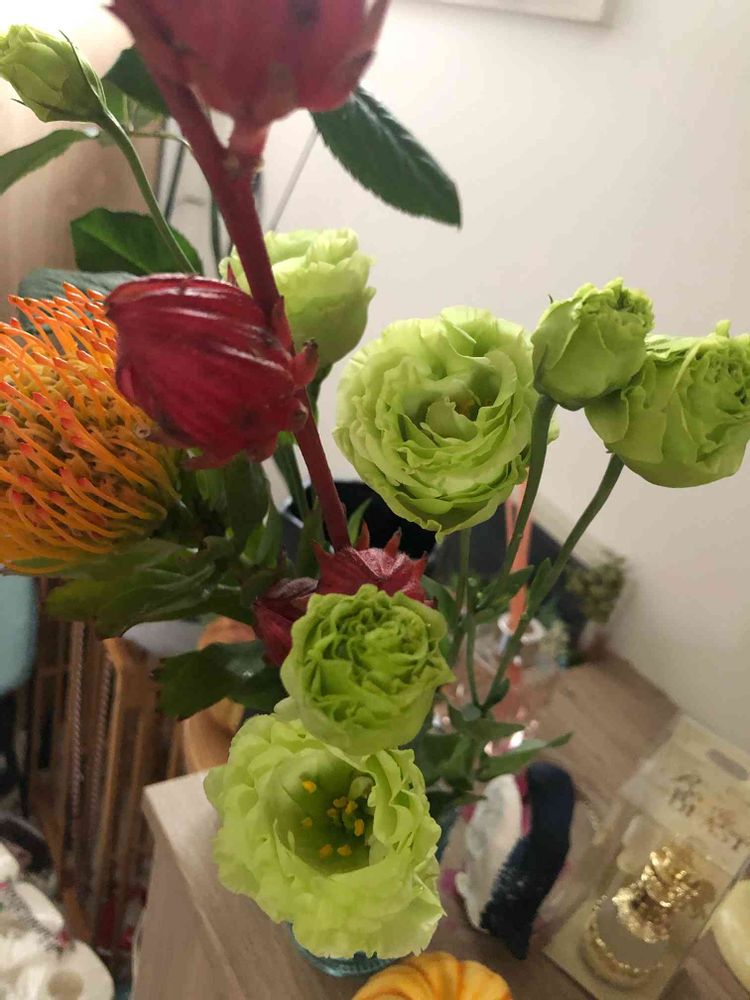 こはじらさんのインテリア,トルコキキョウ,ハイビスカスの実の投稿画像