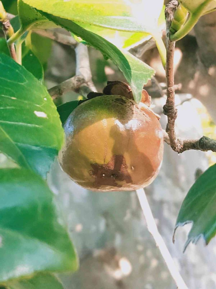 北側に2個目 発見 ••••• 🤔 ••••南側は 何もなし カラスに違いない 大胆不敵 後れを取った•• これを もぎ取る 勇気は ••私にはまだ無い ••••••🐰🐝