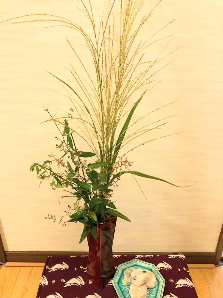 GSメイトさんから、お母さんがお月見🌕の時にはススキと萩を飾っておられたとお聞きし、倣って生けてみました。とってもマッチして落ち着きます˚✧₊⁎❝᷀ົཽ≀ˍ̮ ❝᷀ົཽ⁎⁺˳✧༚