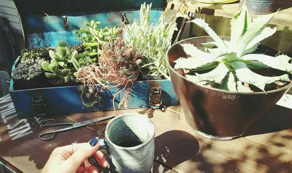今日連れて帰ってきた子達♡いい天気なので日光浴させてそれを眺めながら庭でコーヒーを...ってもう植業病♡(笑)