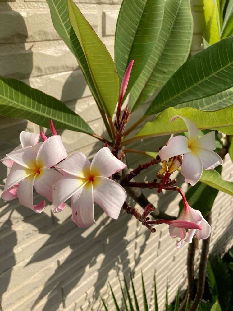 プルメリア!涼しくなって沢山咲いていますねー!こちらも暑さで全然咲かなかったのですが、最近、色々な所で咲き出しましたー!薄いピンク💗💗素敵ですねー!(o^^o)