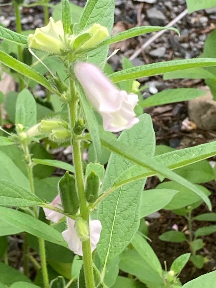 ごまの花ですがホタルブクロを少し小さくした感じでしょうか🤔
