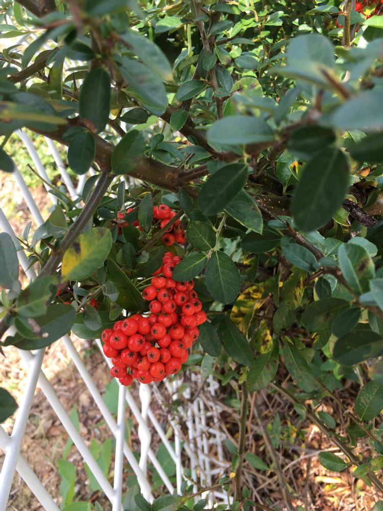 枝に棘が見えるので、ピラカンサだと思います。