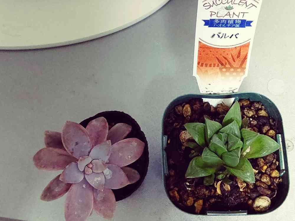 以前から気になっていて、購入したハオルチア、と名称不明のピンクの多肉。