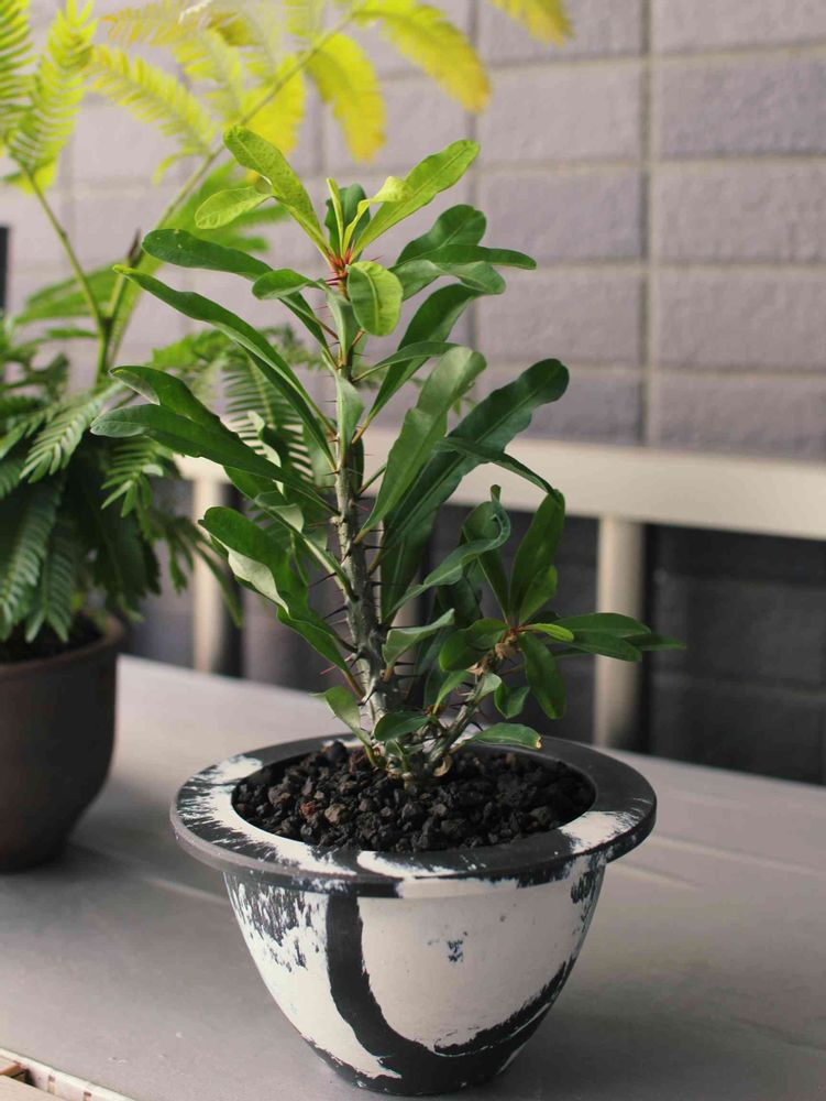 黒プラ鉢に白ペンキがアーティスティックに塗られて良い雰囲気です❣️