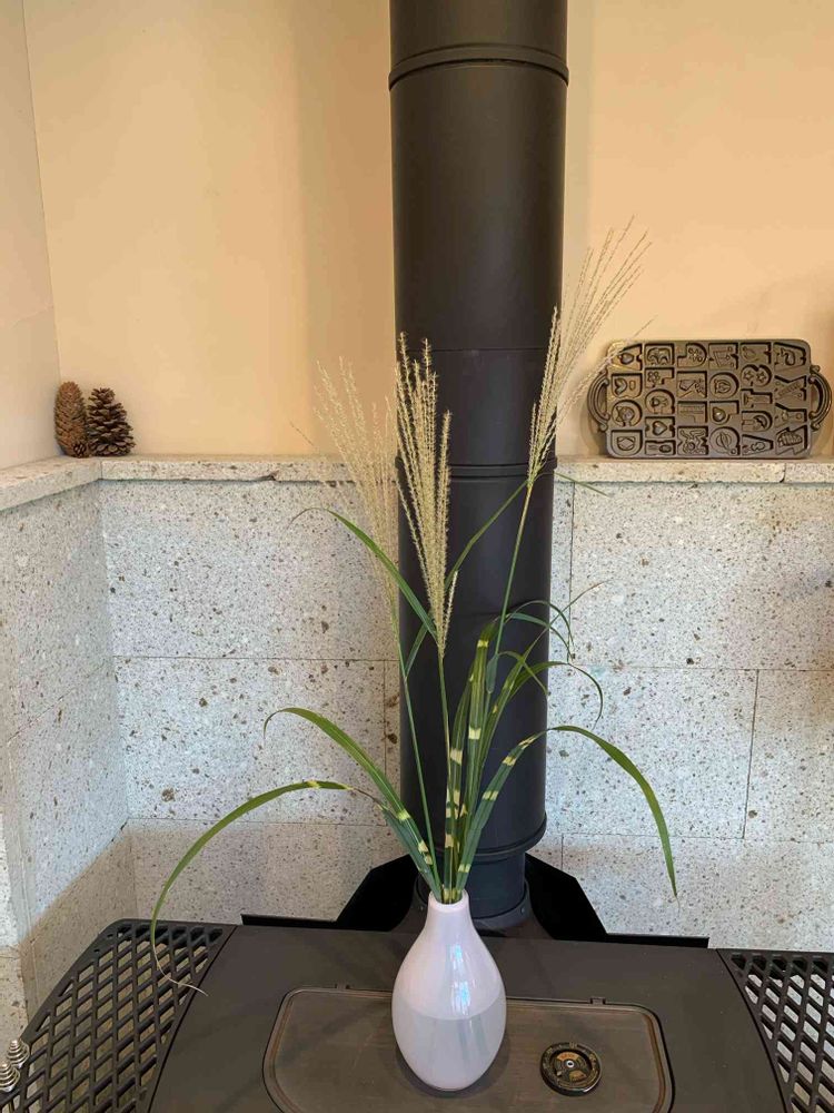 先日お掃除した薪ストーブの上にススキを飾りました。