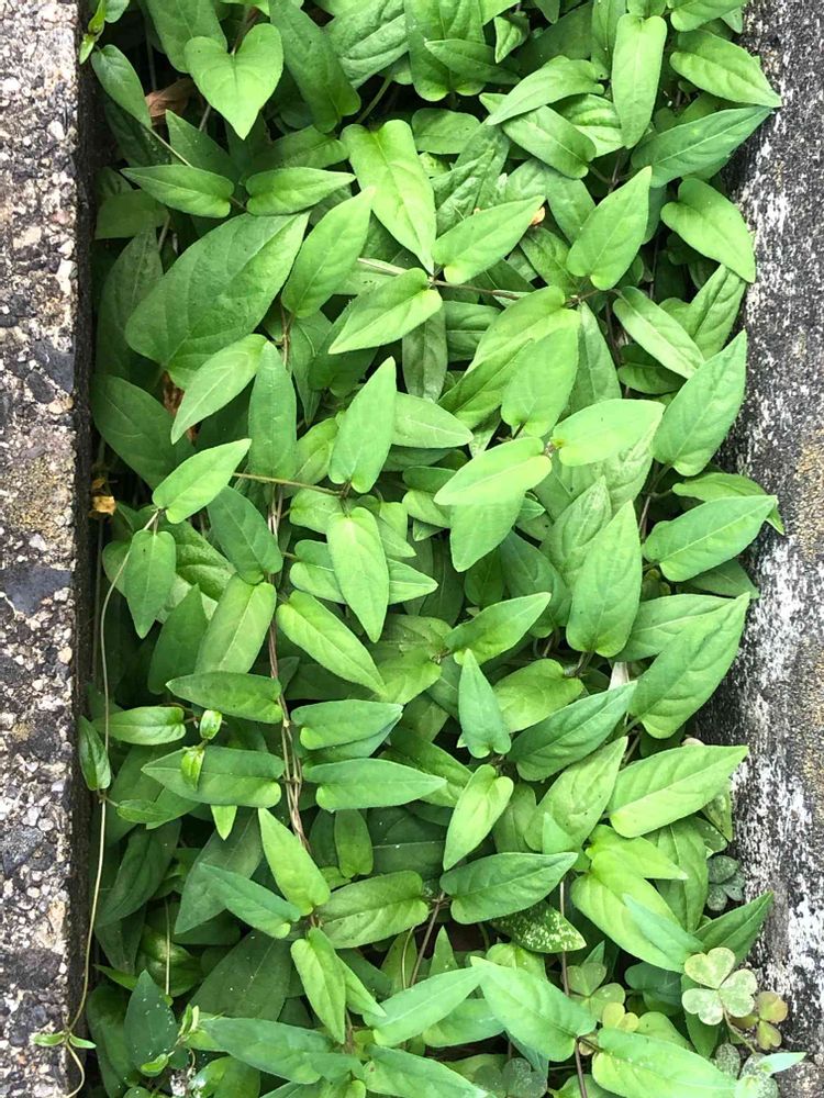 側溝にみっしりと伸びたヘクソカズラ