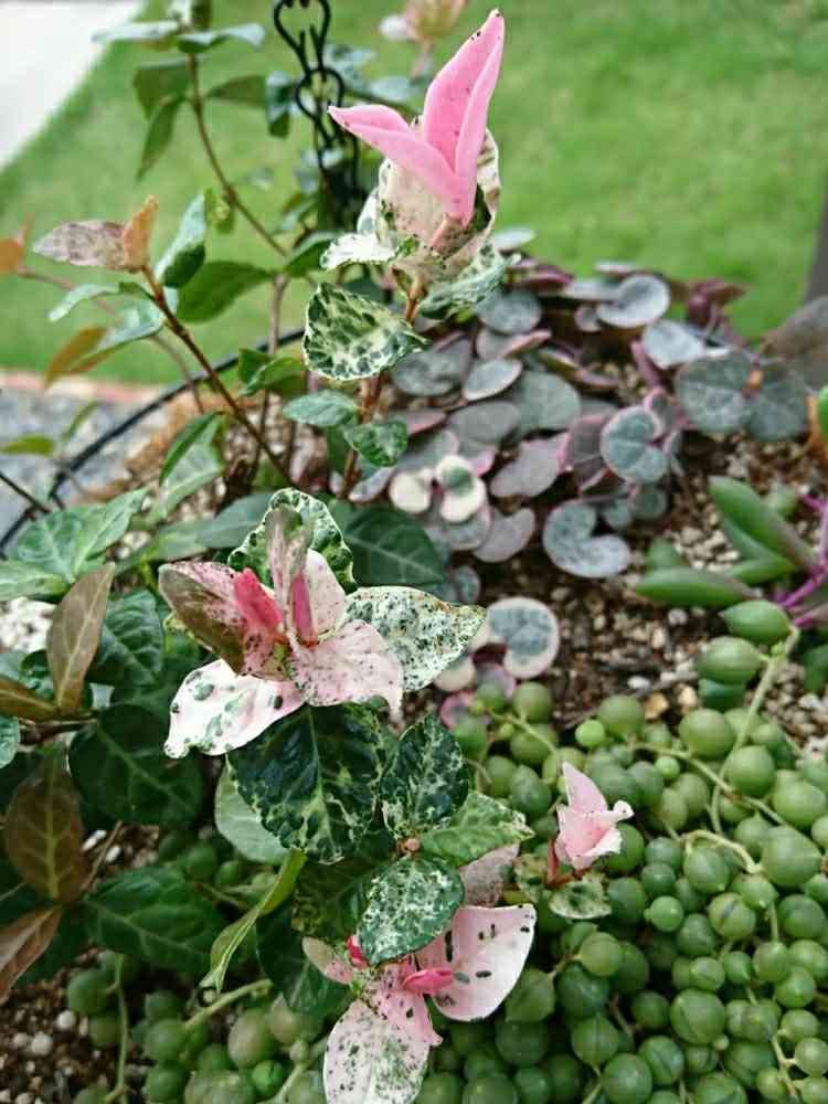 みんな垂れる系だし、グリネも、ハートカズラも多肉ちゃんのなかではお水好きだし、相性良さそう😍