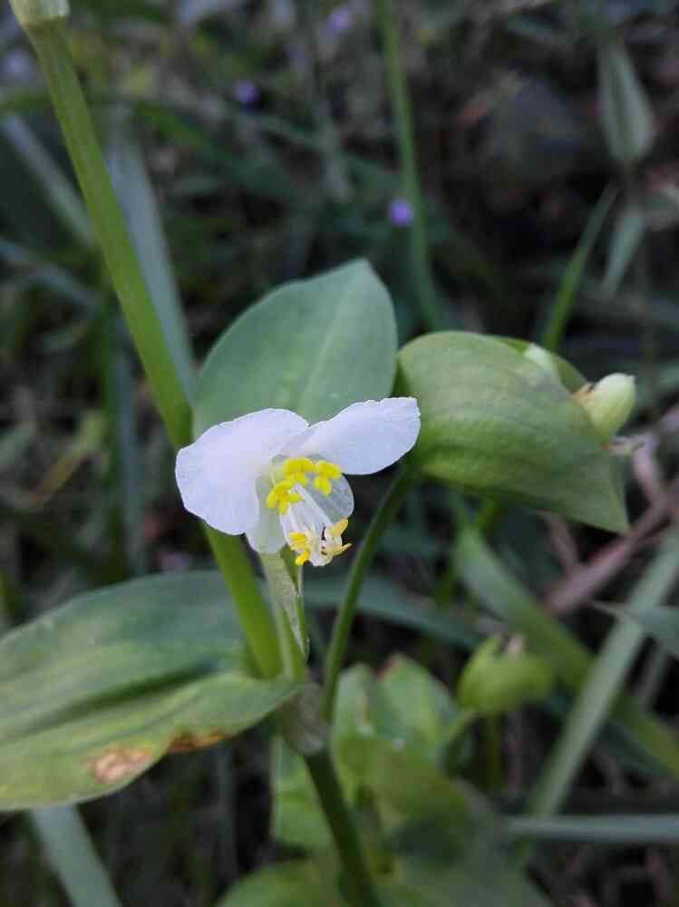 私も昨日里山で偶然見かけました。ツユクサより花が小さく白いのは日陰で栄養不足で色が出なかったのかな?と思ってました。