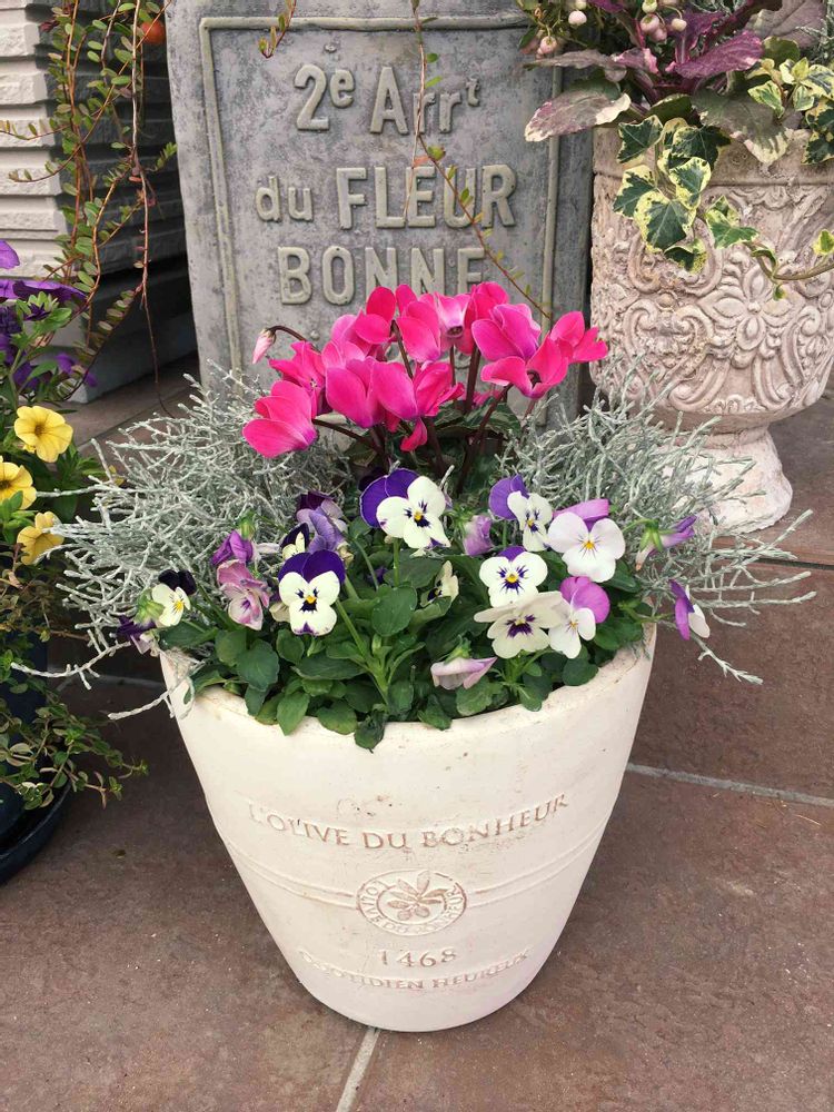 ビオラとミニシクラメンで寄せ植えしました❣️