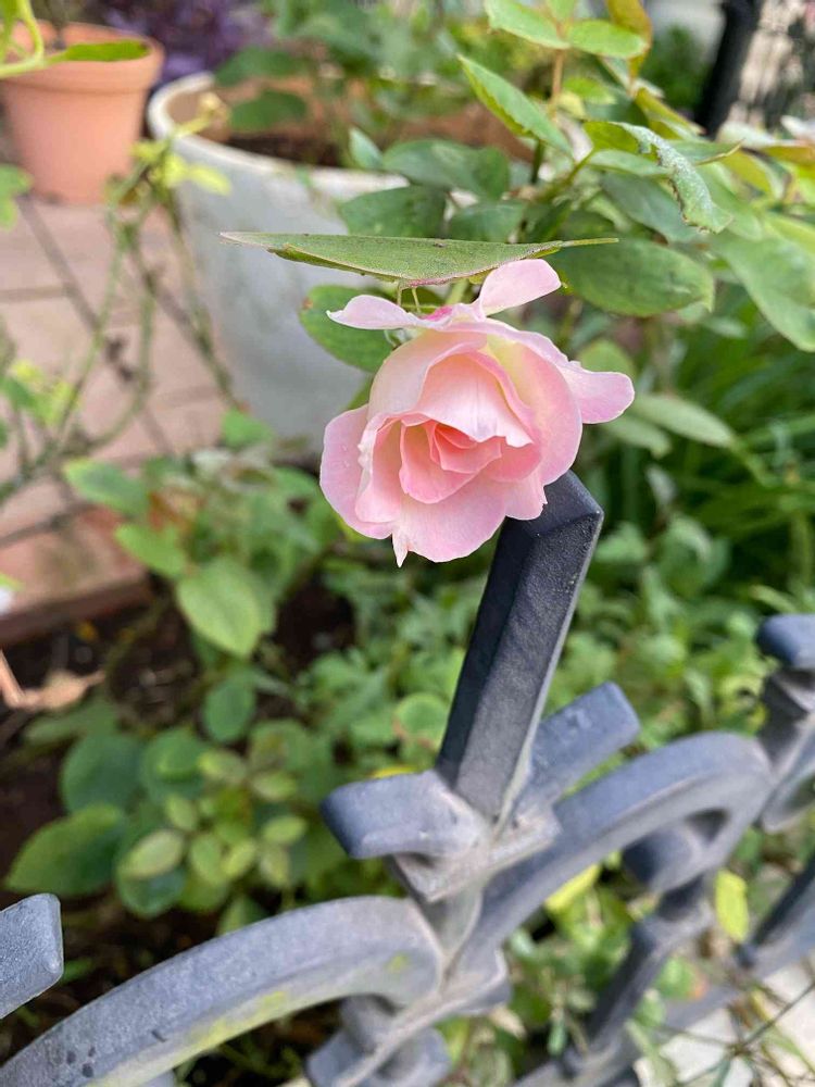 ウォーキン中に可愛らしいバラを発見し、写真を撮ろうとカメラを向けて気付いた。