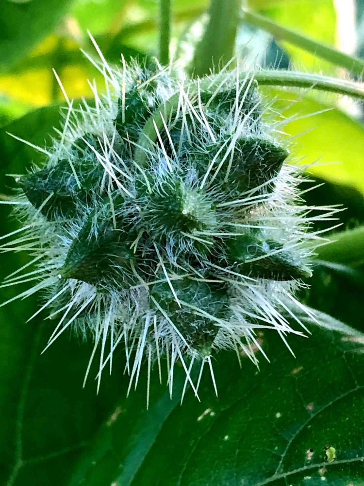 先日upしたアレチウリの果実。こんぺいとうの形に、柔らかい毛で覆われています。見た目では、気づきませんでした。毛の中にトゲらしきものが😱