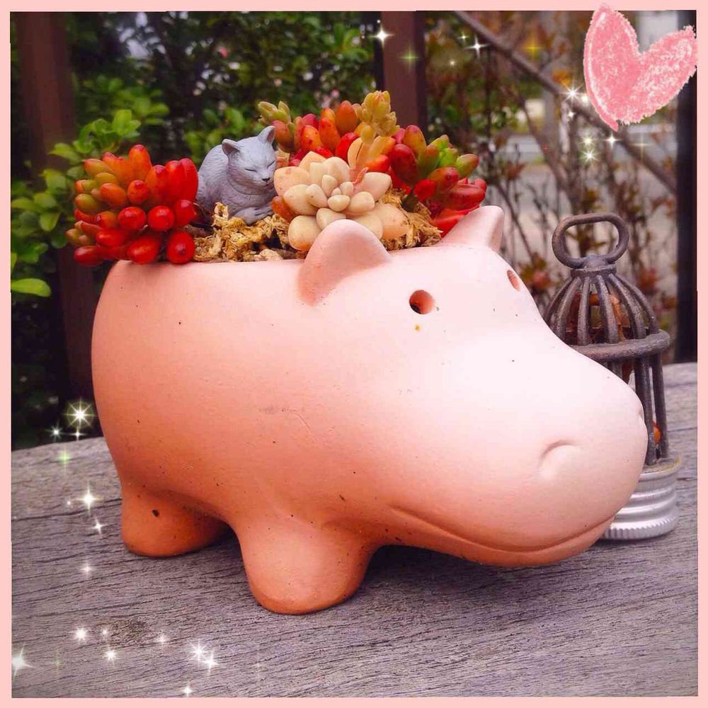 お気に入りのカバさんの鉢にちまちま寄せしてあります💓