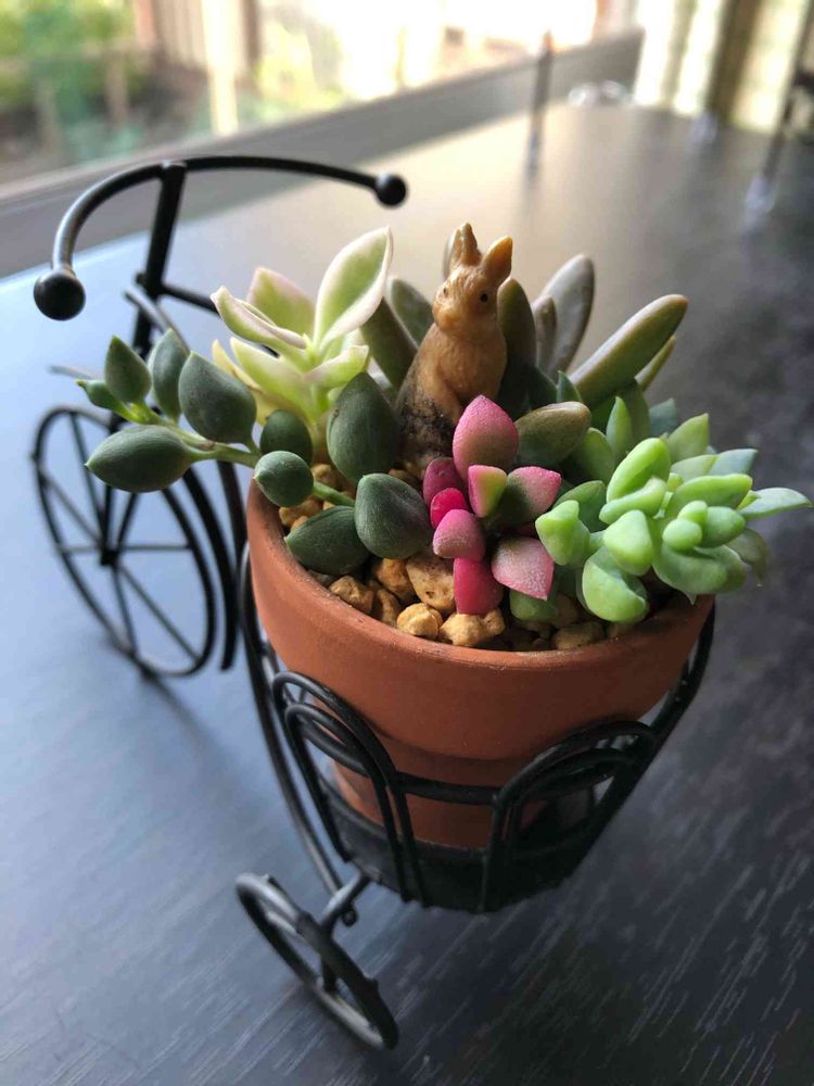 多肉 ステキ❗️鉢置きの自転車も オシャレ✨💄👠