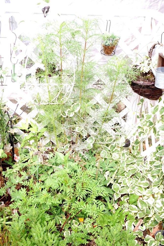 ほぼ葉っぱだけになったルピナスと、切ってもどんどん伸びるツルニチニチソウと、まだほぼ葉っぱだけのマリーゴールドとヒャクニチソウ…で、こんなんなっております笑