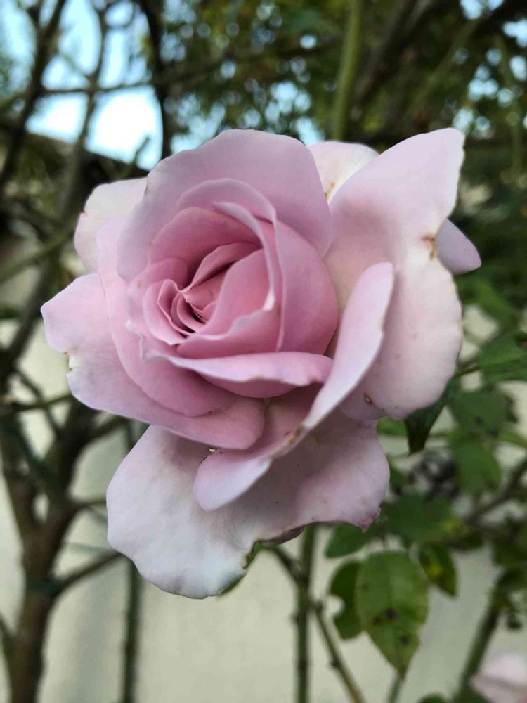 こんにちは😃 ありがとうございます。花弁は雨で、少し傷んでいますが、香りが良く香水にもなった薔薇なんですよ💕 木は、直径4cmほど高さ2mにもなっています。繁殖力もあり、挿木もすぐにつき花も咲いています。場所は取りますが、うちのエントランスの顔ですよ。🌹