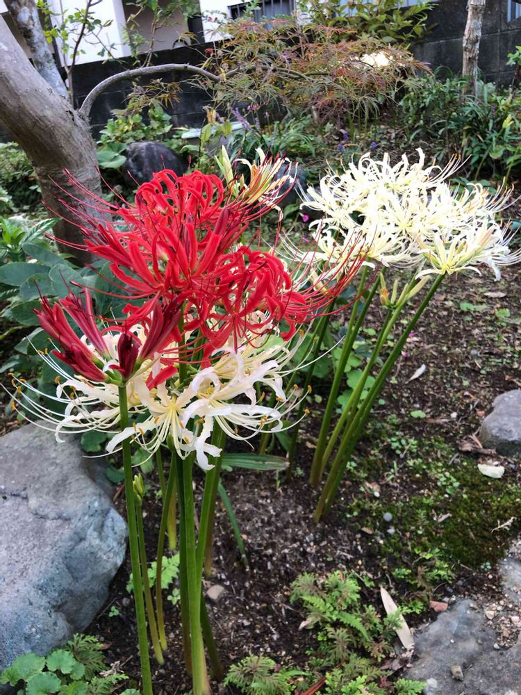 庭の彼岸花も咲き始めました。赤の彼岸花の方が遅いみたいです。