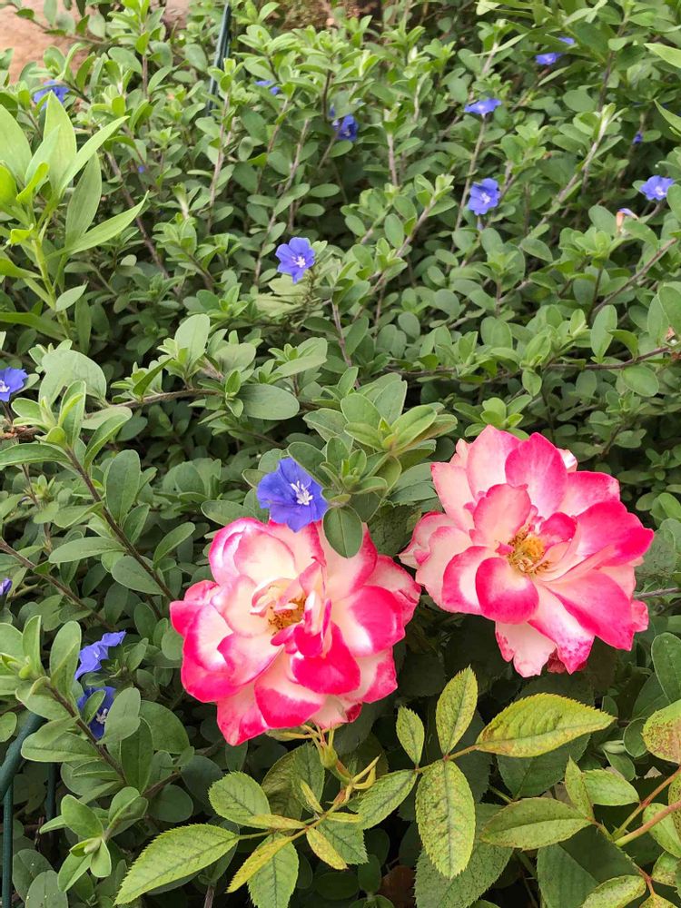 さん✨そうです☺️実家の薔薇とお揃いの薔薇です💕ようやく咲いてくれました😂元気に咲いてくれて嬉しいです💕アメリカンブルーとうまい具合にツーショット撮れました💕