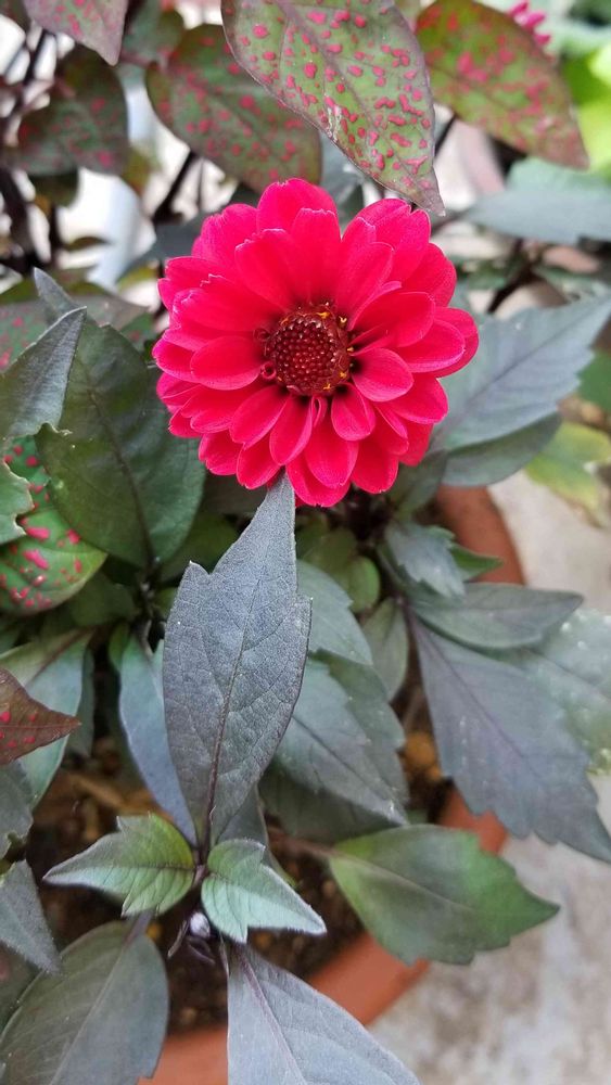 この深紅のお花と葉っぱの色にひかれ、おうちに…😊