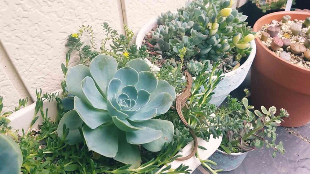 多肉の上にとかげちゃんが(・・;)
