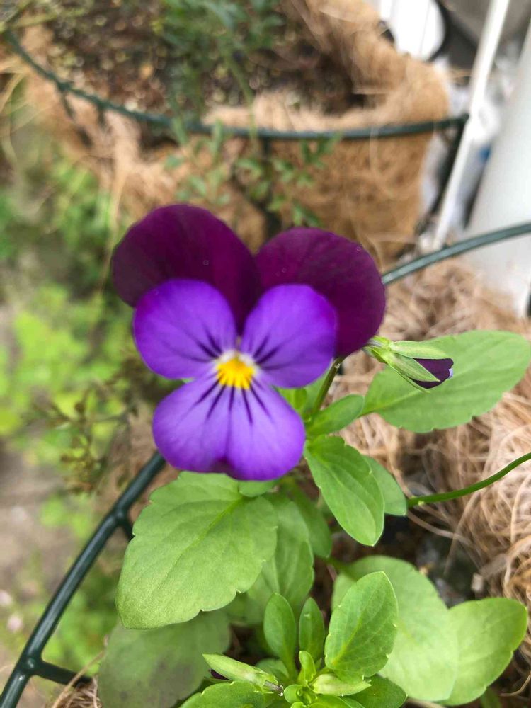 去年植えたビオラのハンギングバスケットから、小苗が出ました🌱