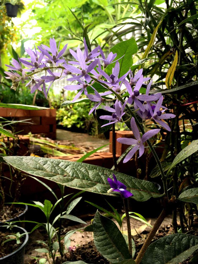マンゴーの樹の根元に植えたペトレア ウォルビリスが花を咲かせてくれました。