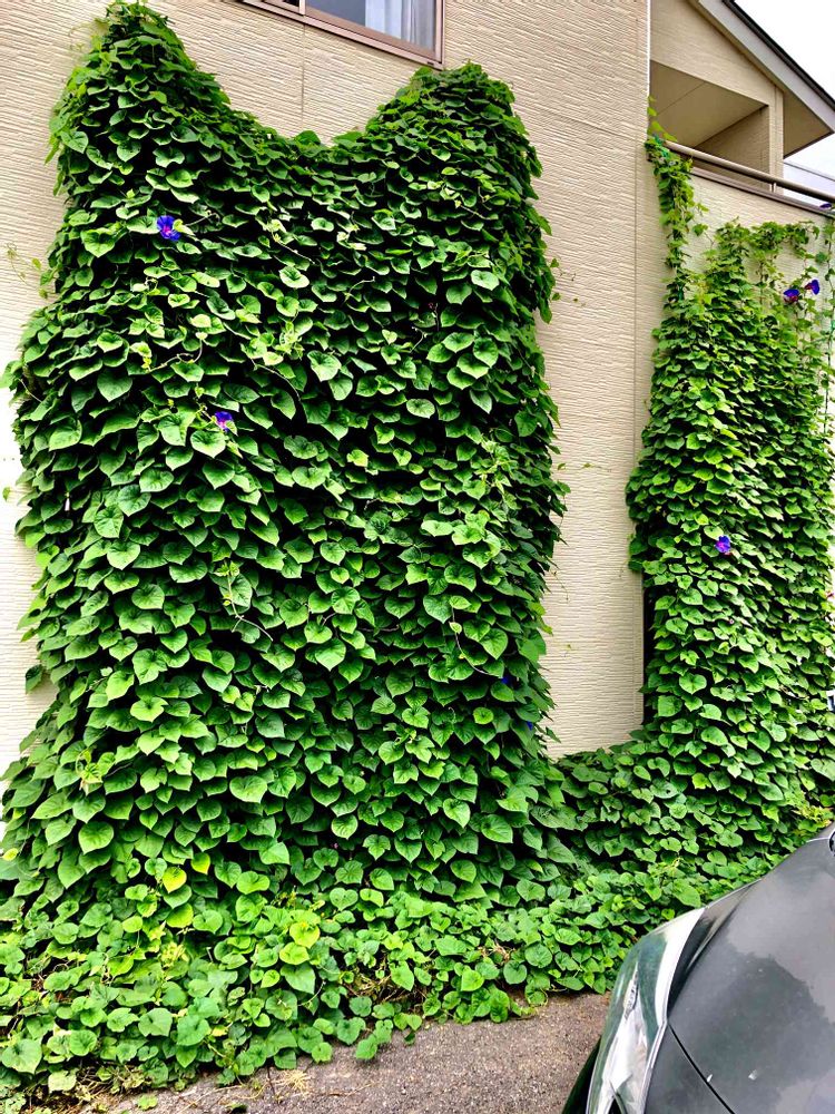 昨年咲き誇ったネコカーテンを今年も期待したものの‥被災の頃咲いていたのが嘘のように💦葉ばかり成長して地べたまで葉が埋め尽くしていました😅地べたは少し剥がしましたが‥お花期待出来ず💦もぉ少しグリーンカーテンを楽しみます〜😅💕
